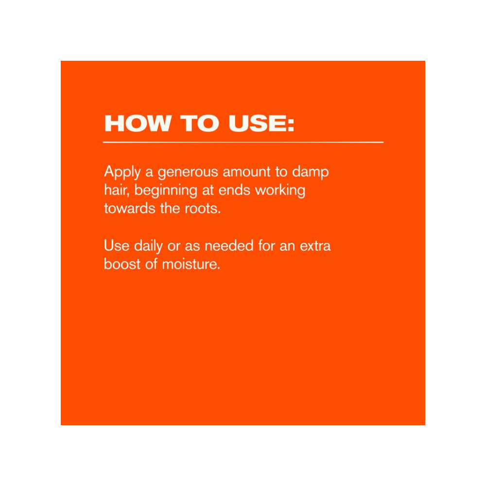 Apply to damp hair from roots to ends. Do not rinse. Style as desired with the Ultra Moisture Curl Cream for definition that lasts, or the Nourishing Hair Oil to lock in moisture.